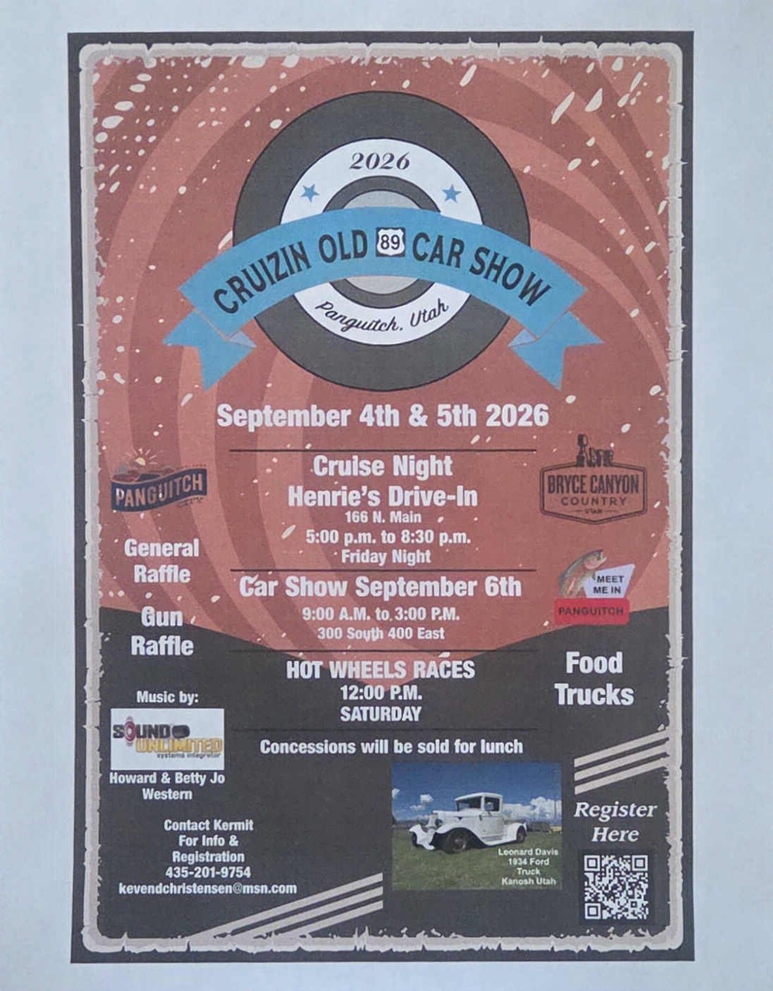 Friday night band, burnouts dinner and cruise at Henrie’s Drive-In, 5:00p – 8:30p